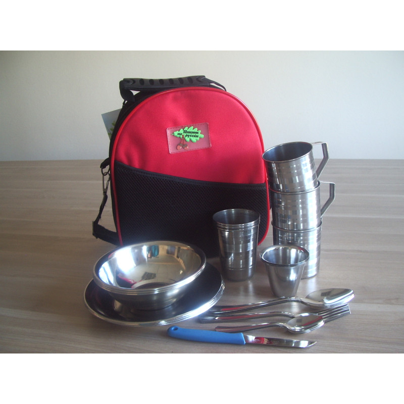 Практичный туристический кейс на три персоны представляет собой набор необходимой посуды для продолжительной охоты рыбалки и туристических походов. В комплект входят по три тарелки, глубоких миски, кружки, стакана, рюмки и столовые приборы. Посуда упакована в удобную переносную сумку с одним главным отделением с кармашками и креплениям, и небольшого переднего отделения на молнии. Такой кейс не занимает много места, имеет минимальный вес, отличается долговечностью и износостойкостью. Это отличный подарок для каждого любителя отдыха на природе.